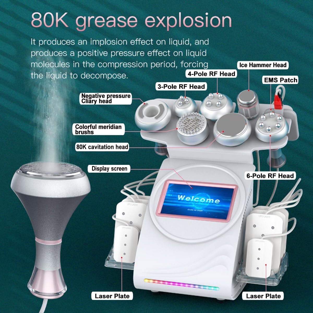 Con el sistema de cavitación de 80 KHZ más útil, dirigido selectivamente al tejido graso.